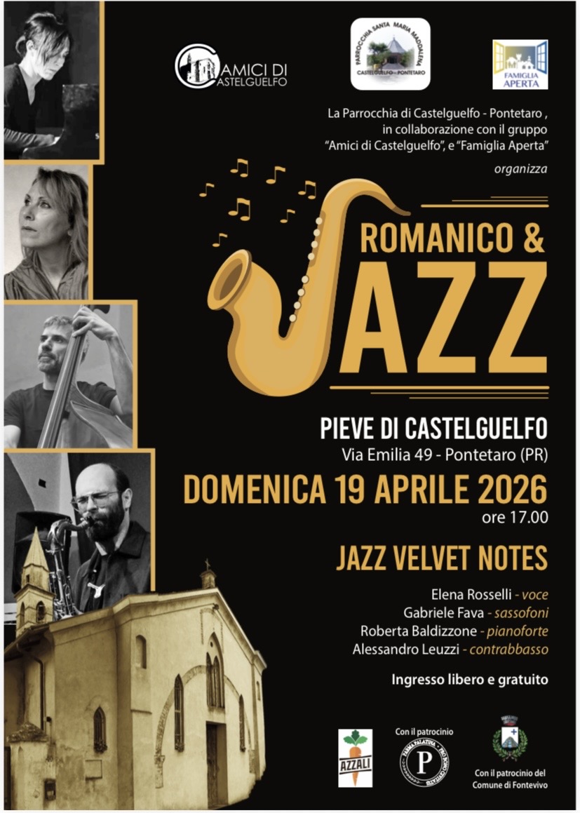 Il prossimo imperdibile appuntamento, che rientra nella rassegna “Romanico & jazz”, è il concerto “JAZZ VELVET NOTES”, con un quartetto di eccezione: Elena Rosselli (voce), Gabriele Fava (sassofoni), Alessandro Leuzzi (contrabbasso), Roberta Baldizzone (pianoforte). Sarà un affascinante omaggio al “Cool Jazz”, nato negli USA alla fine degli anni ’40, con sonorità morbide ed atmosfere raffinate, ma anche al “Vocalese”, ovvero l'arte di scrivere testi poetici su assoli orchestrali mettendo in risalto la musicalità della voce, quasi fosse un vero e proprio strumento. L’evento si terrà Domenica 19 Aprile alle ore 17 nella Chiesa di Castelguelfo (Pr), in via Emilia 49. Ingresso libero e gratuito sino ad esaurimento posti. Info: amicidicastelguelfo@gmail.com
